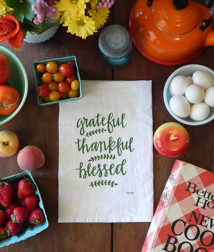 Green Bee Tea Towels - Grateful, Thankful, Blessed Flour Sack Tea Towel